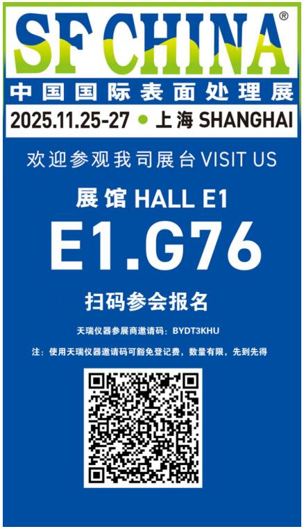 中國國際表面處理展(SFCHINA)將于2025年11月25-27日在上海新國際博覽中心(SNIEC)舉行,匯聚全球表面處理行業人士,天瑞儀器受邀參展(展位:E1.G76)。我們將展示在天瑞在電鍍行業的新技術與解決方案,期待與您面對面交流,共探合作機遇。