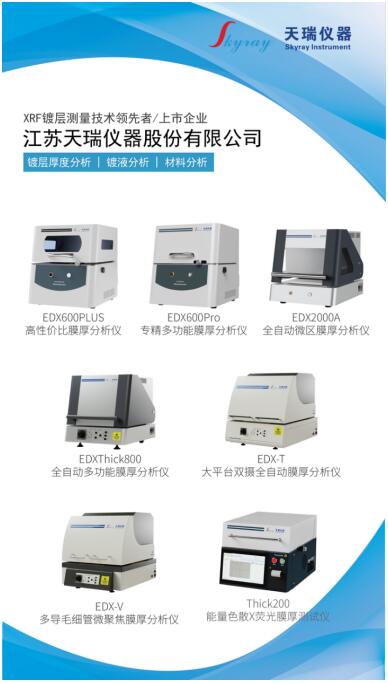 天瑞儀器擁有30多年XRF技術經驗,一直是國內XRF行業技術的引領者。公司在鍍層測厚、RoHS檢測、電鍍液成分分析領域構建了強大的技術實力,能夠為您提供種類豐富、性能卓越的檢測設備與定制化方案。