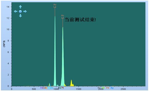 選取某公司生產黃金首飾,使用EDX 3000PLUS儀器,對其進行測試。如下圖2所示,為儀器測試點,可將樣品需測試點移動到十字光標中心進行測試。