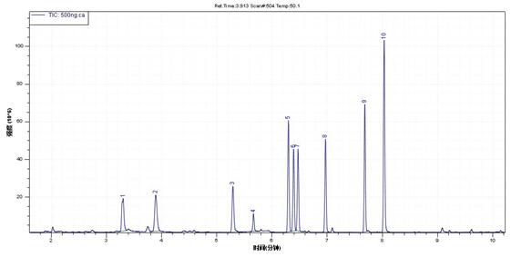 進樣口溫度:200℃;氣質接口溫度:230℃;離子源溫度:230℃;