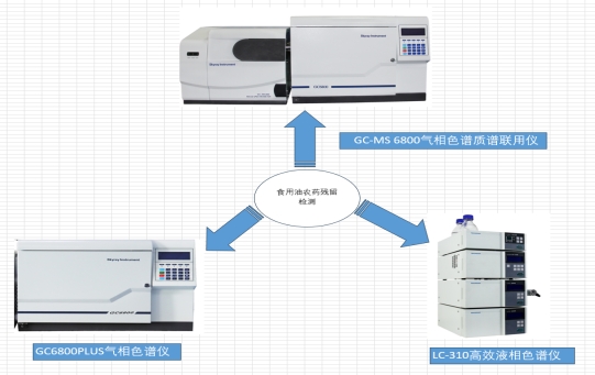 食用油中的農藥殘留檢測,因其油品基質復雜,樣品采用有機溶劑萃取,經SPE固相萃取凈化后,分別用GC-MS 6800氣相色譜質譜聯用儀、GC-6800plus氣相色譜儀和LC-310高效液相色譜儀檢測,該方法可用于食用油中有機磷類、有機氯類、擬除蟲菊酯類及氨基甲酸酯類等農殘的測試。