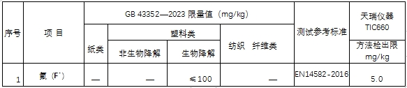 氟(F-)是一種有毒的鹵素元素。對于快遞包裝而言,氟(F-)含量的測定可用于評估塑料可降解包裝袋的環保性能和使用壽命,對于保護環境和人類健康意義重大。