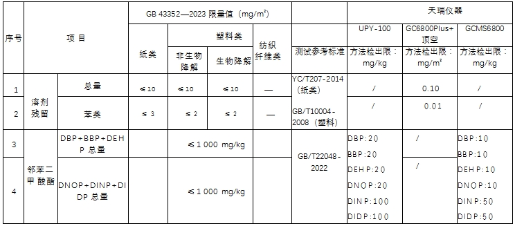 表 5.   溶劑殘留、鄰苯二甲酸酯類物質限量及檢測一覽表