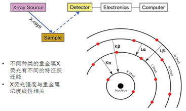 X射線熒光光譜技術(XRF)的原理見圖3所示,可以直接檢測固體或液體樣品中ppm量級的元素成分。采用富集后再檢測的辦法,使得XRF技術對空氣顆粒物中的重金屬成分的檢測限優于0.001ug/m3。而常規實驗室的檢測技術,由于預處理消解過程中需要將微克量級的樣品溶解到幾十克的液體中,而使得濃度被稀釋百萬倍,從而多數儀器(譬如ICP-AES、或原子吸收光譜儀)無法檢出元素含量低于10ug/m3量級的空氣顆粒物樣品。