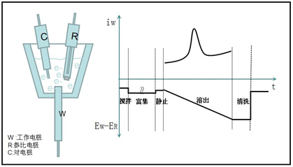 在一定的電位下,使待測金屬離子部分地還原成金屬并溶入微電極或析出于電極的表面,然后向電極施加反向電壓,使微電極上的金屬氧化而產生氧化電流,根據氧化過程的電流一電壓曲線進行分析的伏安法。 陽極溶出伏安法以其極低的成本與高靈敏度的特點、目前在歐美正取代傳統的原子吸收方法大量應用于環境應急監測、自來水檢測、電鍍和表面處理行業廢水檢測、食品、制藥、醫院廢水監測等方面。