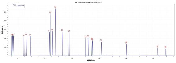 測定方式:TICFULL SCAN)定性(掃描范圍:45-300amu),SIM模式定量。