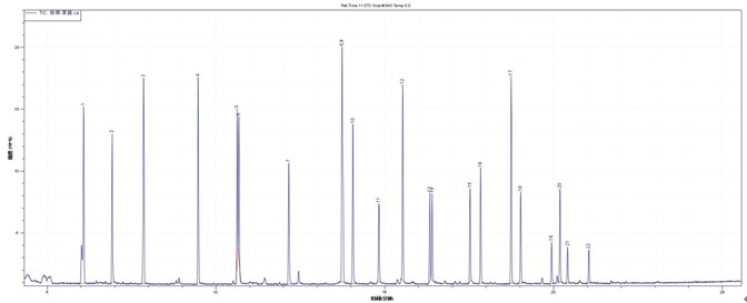 進樣方式:分流進樣,分流比5:1;進樣量:1.0μl