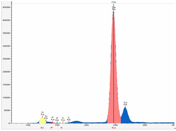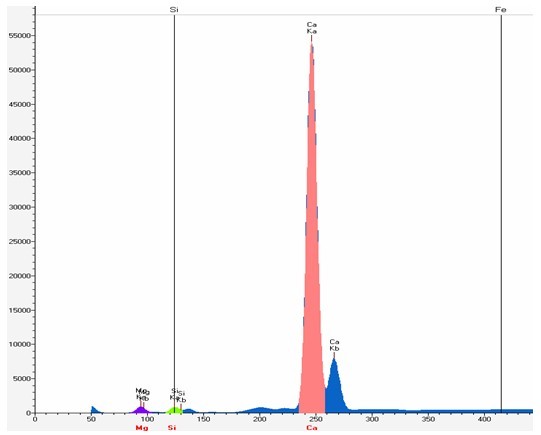 以下使用EDX 3600B型對白云石國標樣GBW07216A實際測試的所得的譜圖,工作曲線等相關數據: