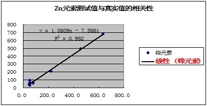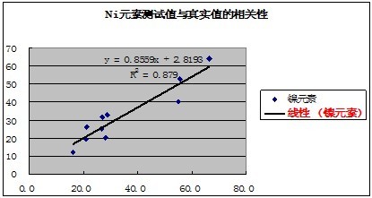 有關(guān)元素的測試值與真實值的相關(guān)性如下表示: